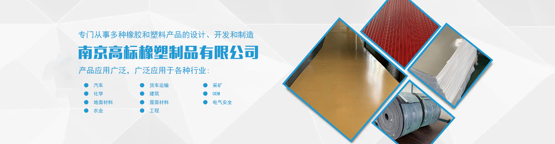 南京高標橡塑制品有限公司是一家專業(yè)的橡膠板、橡膠制品和熱塑性塑料產(chǎn)品的制造商。主營產(chǎn)品:三元乙丙橡膠板,丁腈橡膠版,氯丁橡膠板,丁苯橡膠板,丁基橡膠板,天然橡膠板,硅橡膠板,氟橡膠板,絕緣,防靜電,導(dǎo)電橡膠板,夾布,夾金屬網(wǎng)橡膠板,耐酸堿橡膠板,耐油橡膠板,耐磨橡膠板,阻燃橡膠板,阻尼橡膠板,減震橡膠板,防滑橡膠板,橡膠墊片等。 高標橡塑專門從事多種橡膠和塑料產(chǎn)品的設(shè)計、開發(fā)和制造。我們的產(chǎn)品應(yīng)用廣泛。廣泛應(yīng)用于各種行業(yè),包括:汽車,貨車運輸,采礦,化學(xué),建筑,OEM,地面材料,屋面材料,電氣安全,農(nóng)業(yè),工程等。 高標橡塑的客戶服務(wù)于許多行業(yè),包括墊片切割、分銷商、工業(yè)用品零售商和批發(fā)商。自